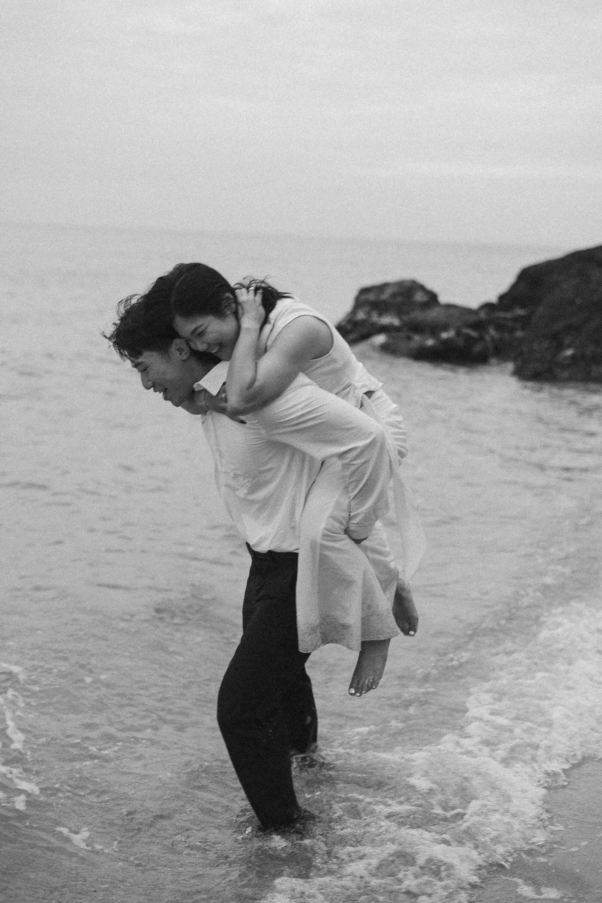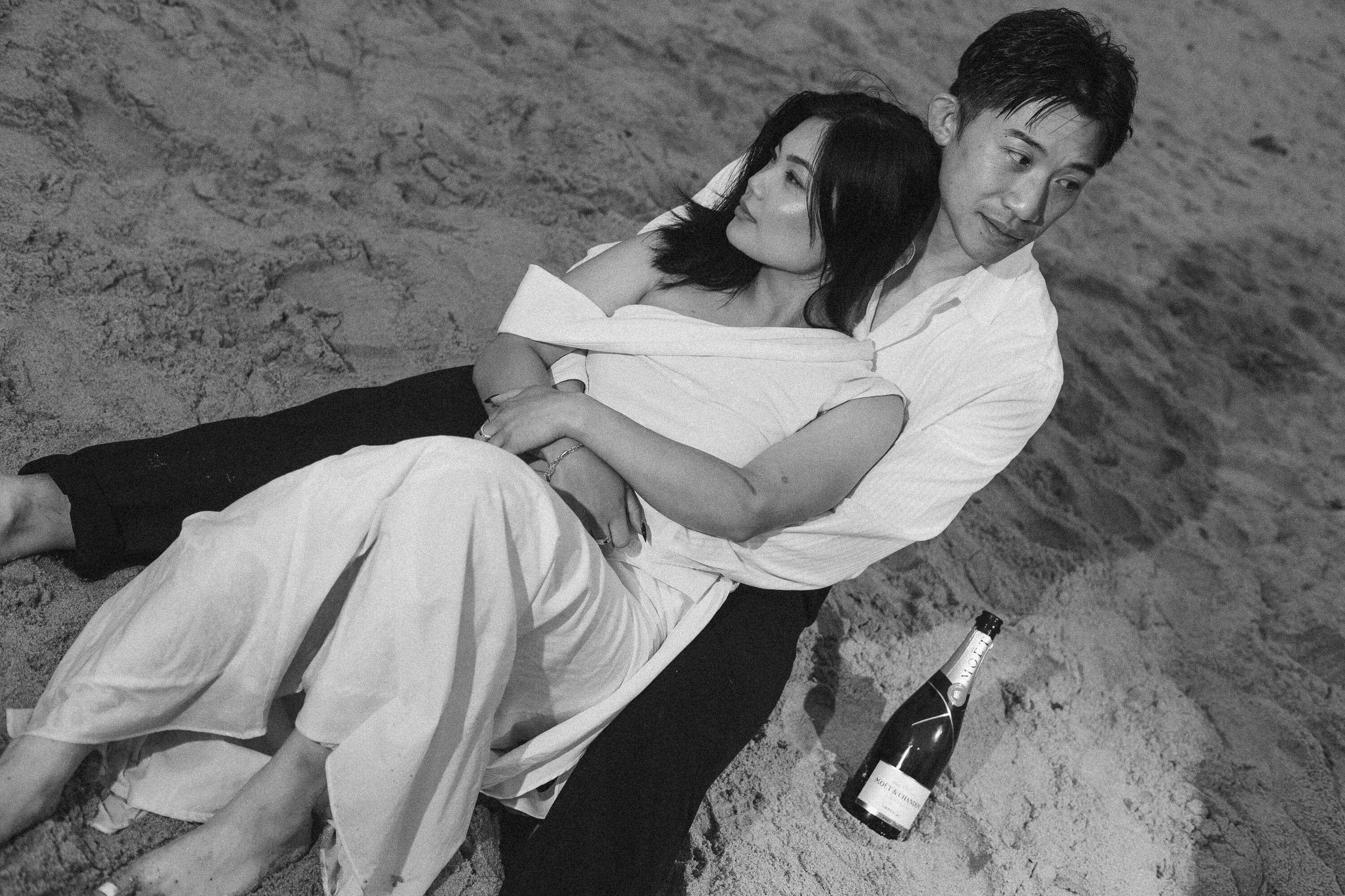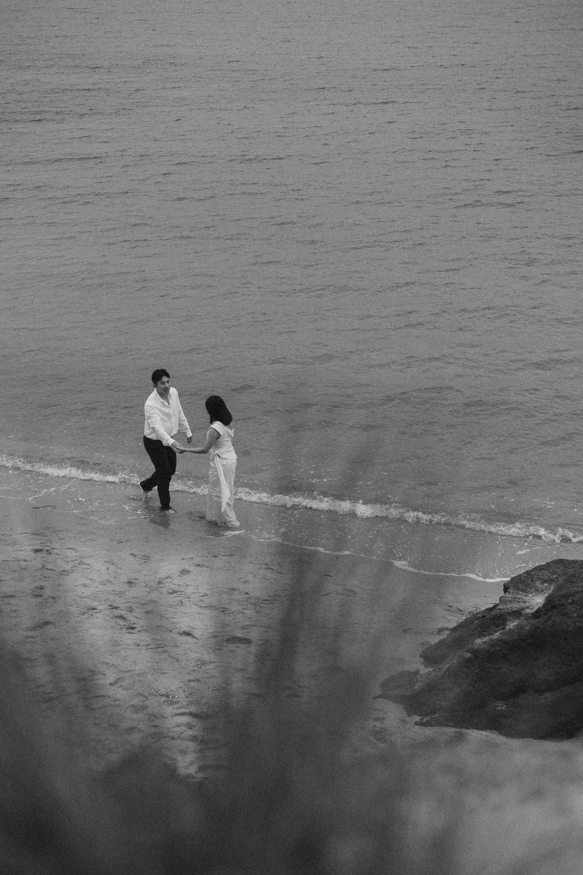 A relaxed engagement session photographed on the Melbourne coastline. Real moments, quietly captured