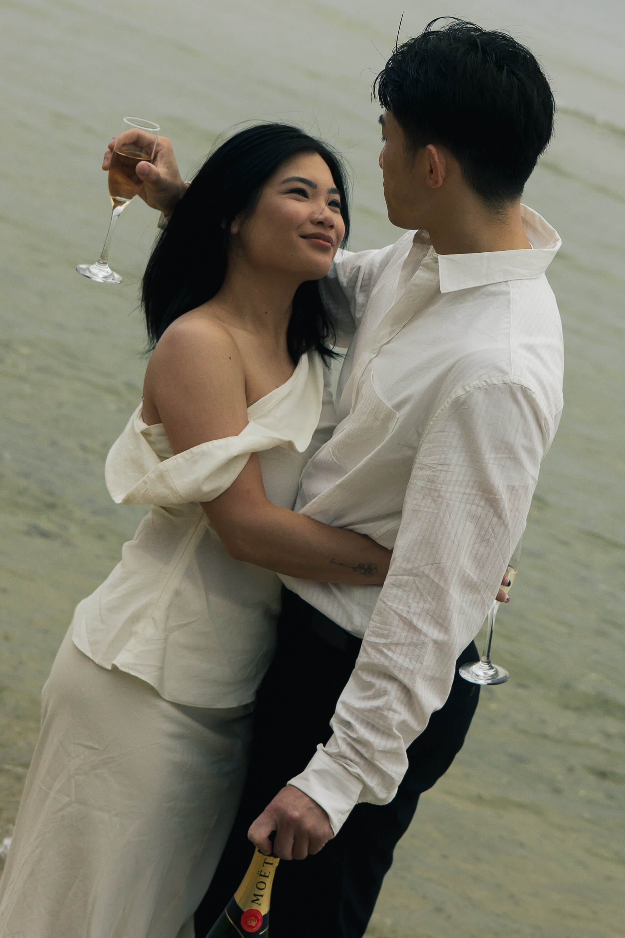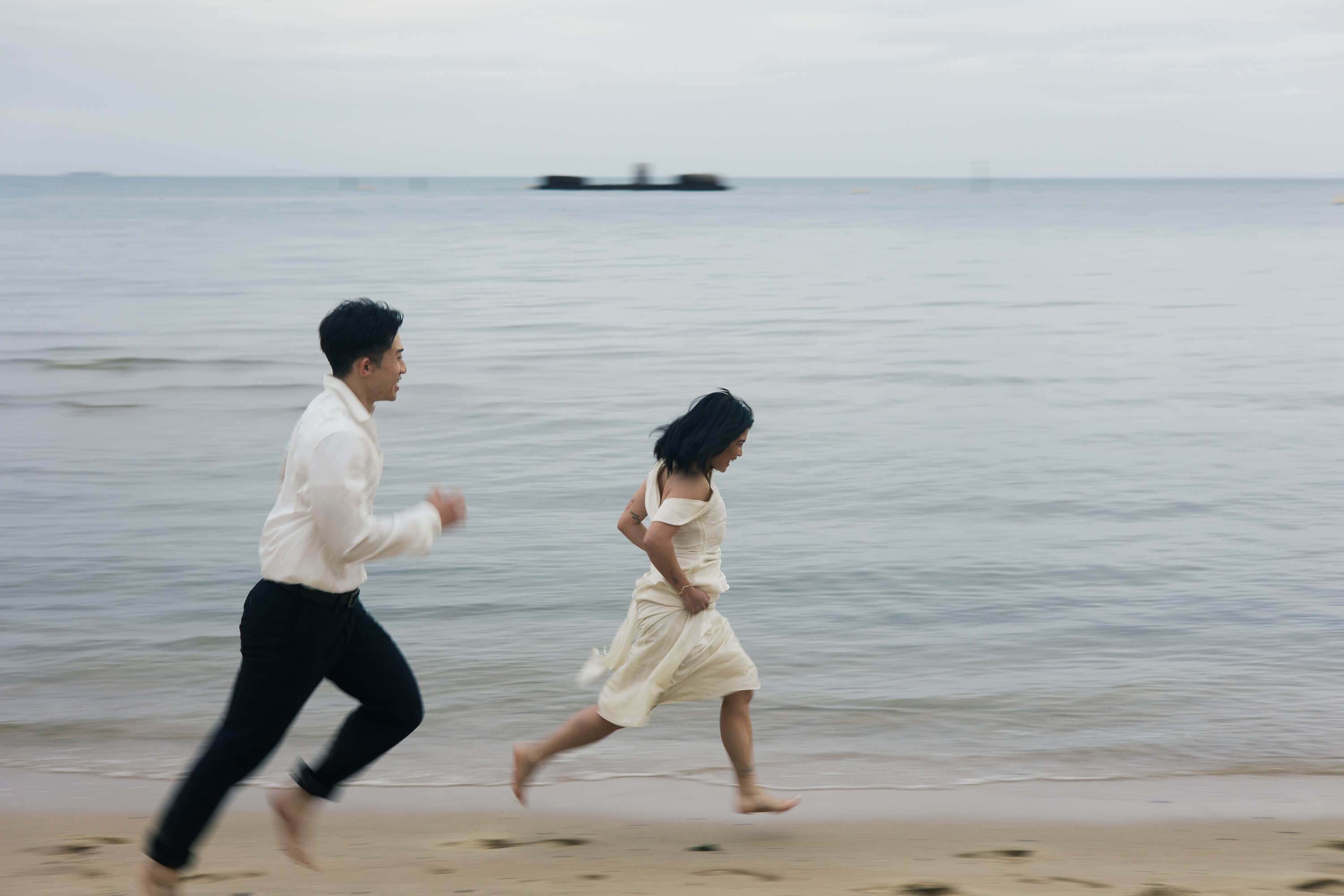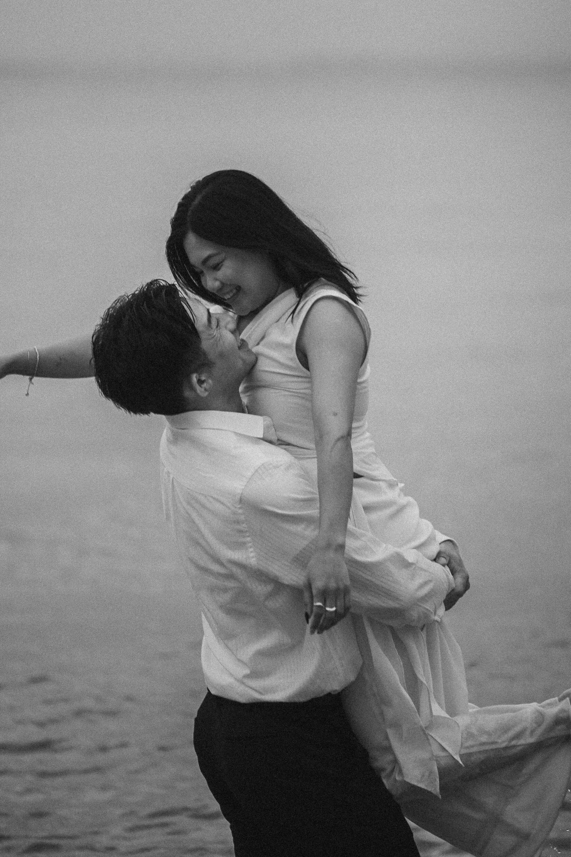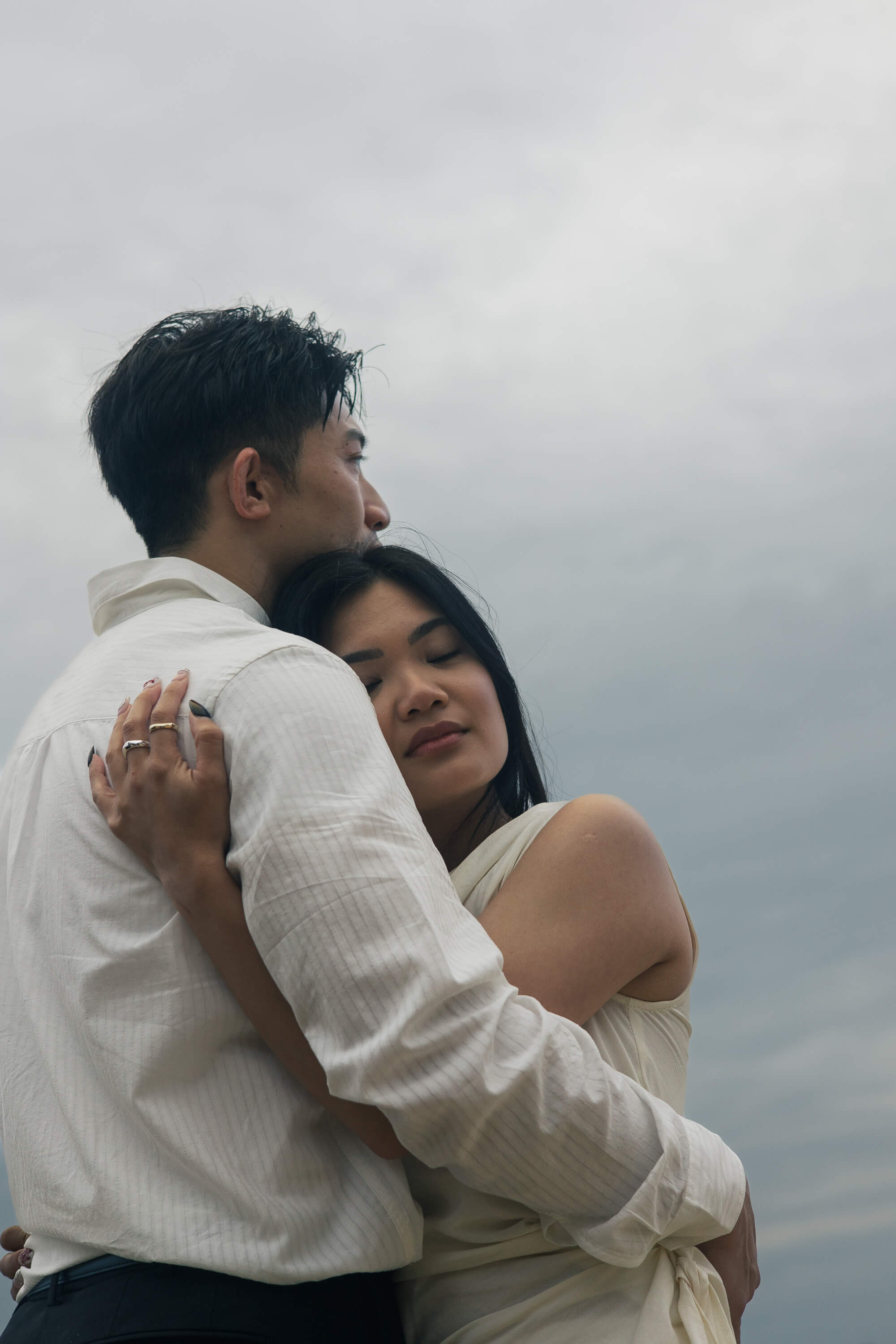 A relaxed engagement session photographed on the Melbourne coastline. Real moments, quietly captured